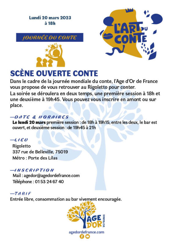 Dans le cadre de la journée mondiale du conte, l’Age d’Or de France vous propose de vous retrouver au Rigoletto pour conter.
