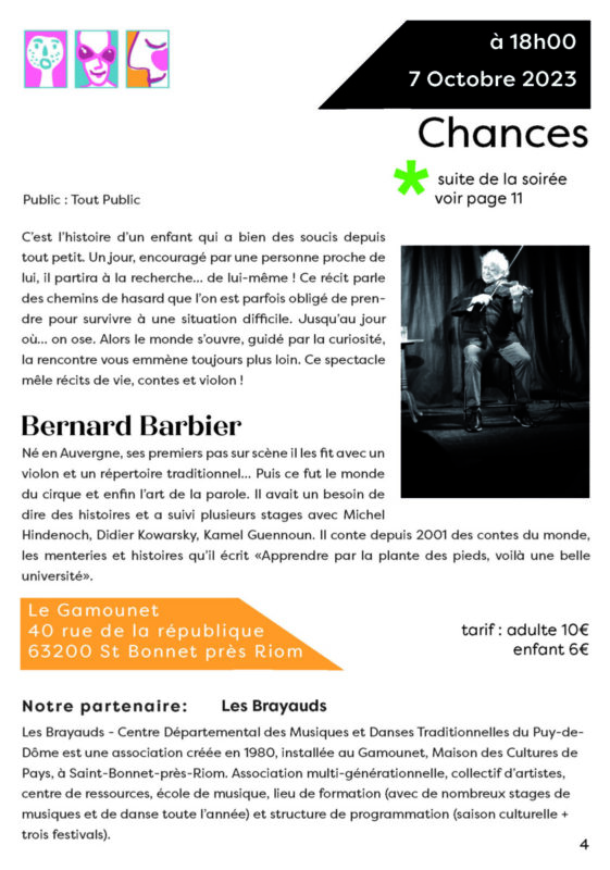 Festival aux 4 coins du conte « Chances » par Bernard BARBIER