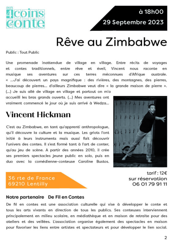 Festival aux 4 coins du conte « Rêve au Zimbabwe » par Vincent HICKMAN