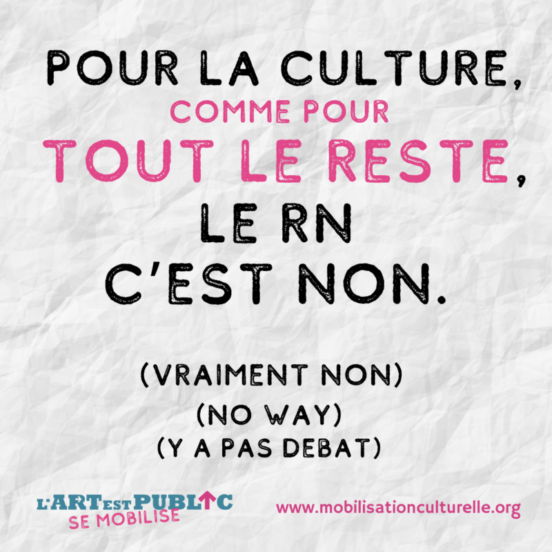 Les actrices et acteurs artistiques, initiatives d’artistes et d’habitant·es, associations sur les territoires connaissent déjà les menaces auxquelles ils et elles seront confronté·es : pressions sur les libertés d’expression, coupes budgétaires, attaques sur les solidarités, précarisation des personnes…